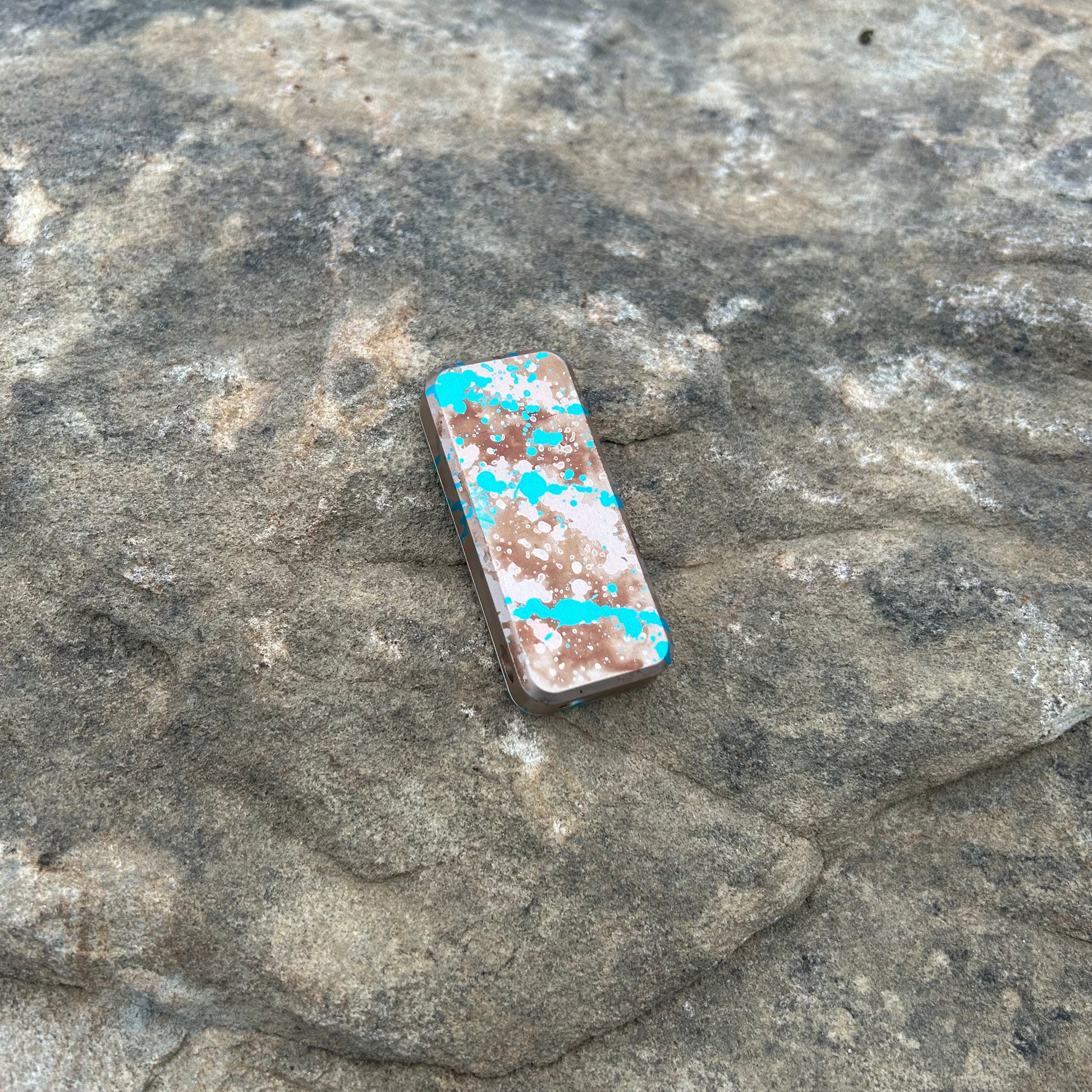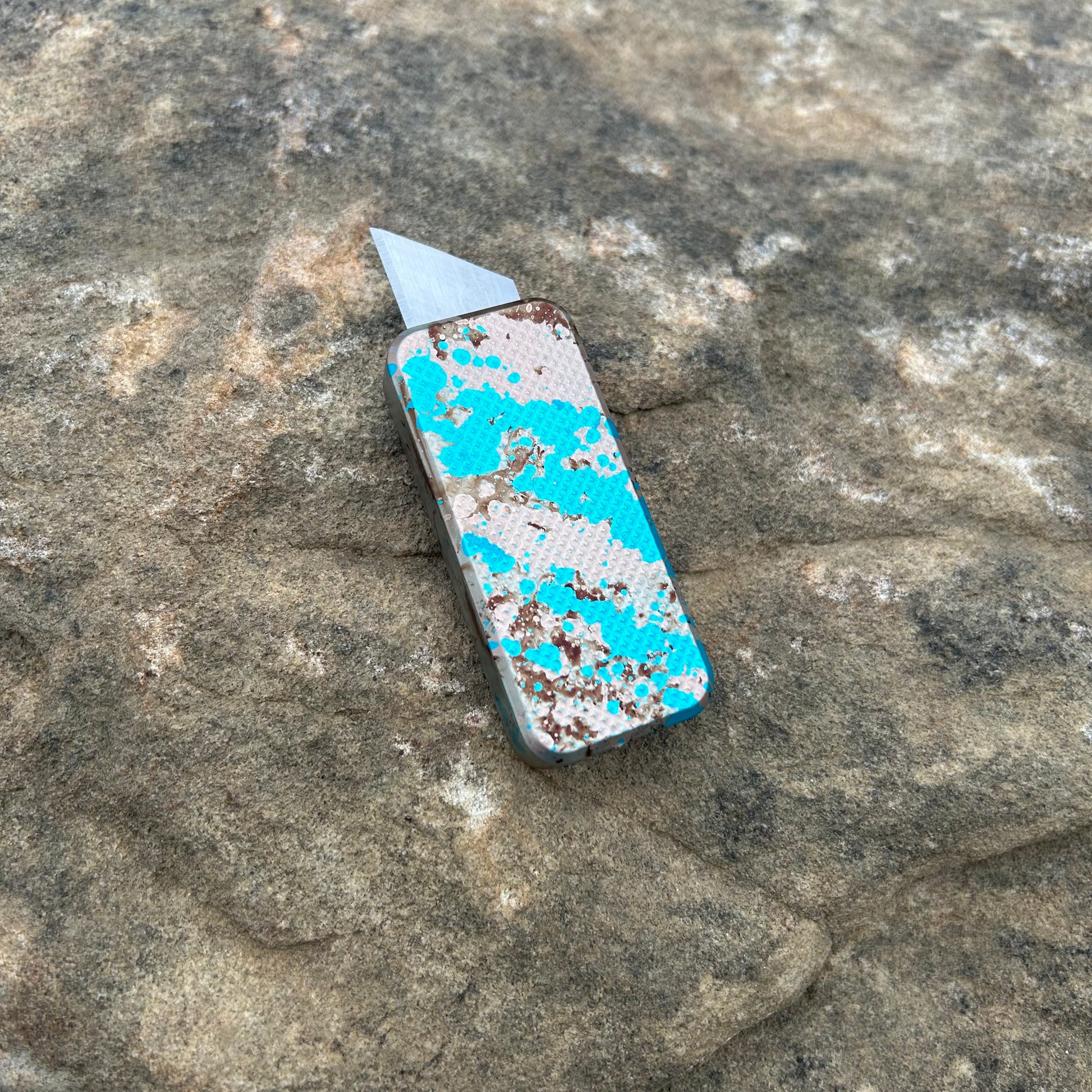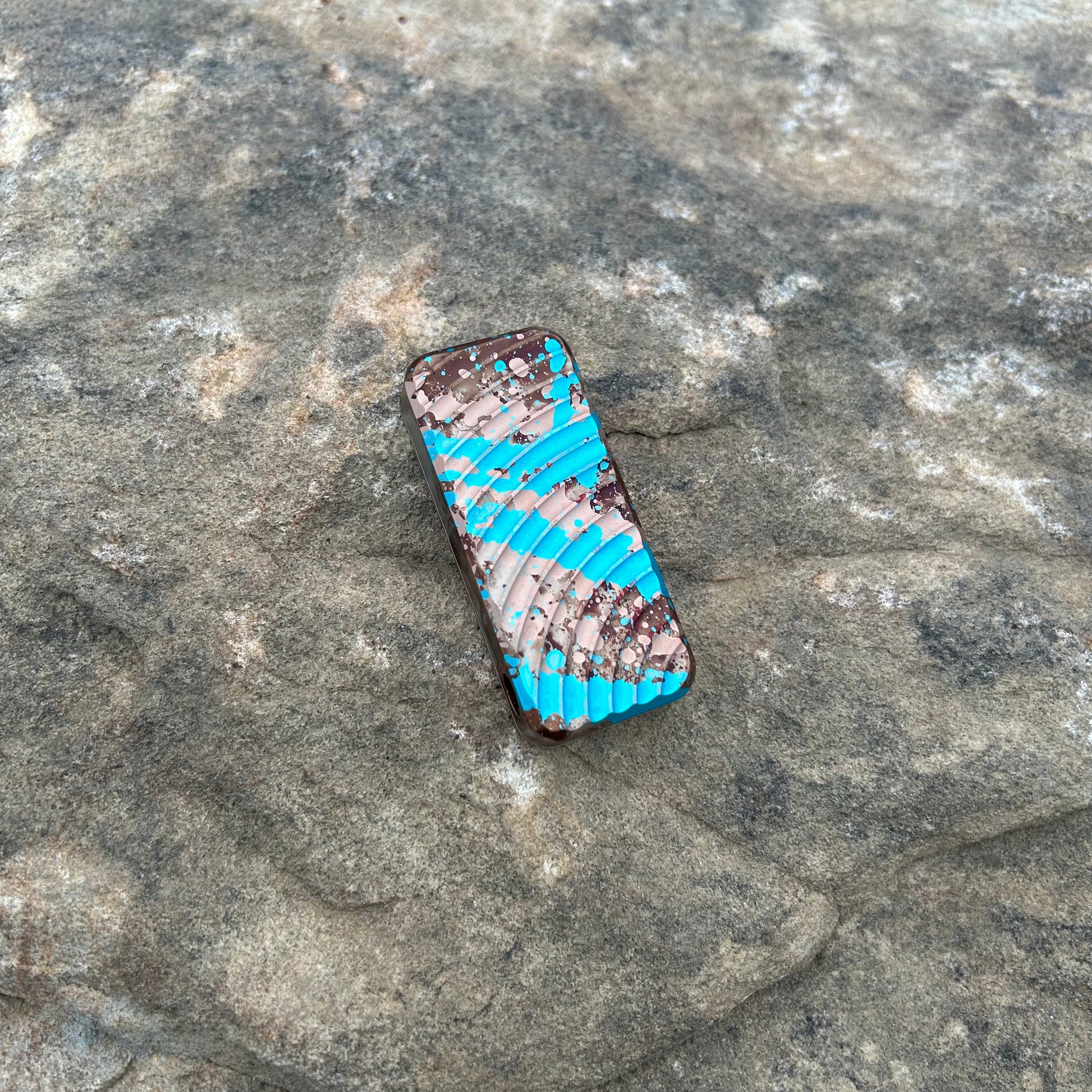 This is a custom anodized Zero in 6061. The finish is a mixture of vibrant colors. Obviously, the proportions matter and with these knives they achieved a beautiful corrosive sky effect.